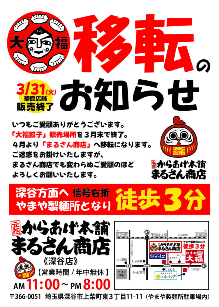《『餃子の大福』販売場所移転のお知らせ》