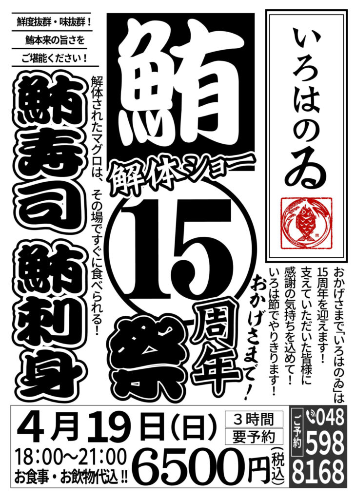 《おかげさまで15周年‼ 今年もやります‼マグロ解体ショー 》